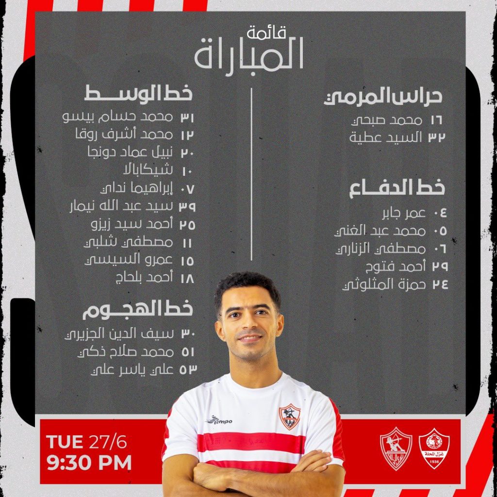 القاهرة في 13 سبتمبر /أ ش أ/أعلن الكولومبي خوان كارلوس أوسوريو المدير الفني للفريق الاول لكرة القدم بنادي الزمالك قائمة الفريق لمواجهة أرتا سولار الجيبوتي، في ذهاب الدور الـ32 لبطولة الكونفدرالية.