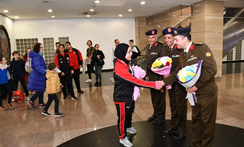 القاهرة فى ١٤ أغسطس/ أ ش أ/استقبل الدكتور أشرف صبحى وزير الشباب والرياضة ووفد من جهاز الرياضة للقوات المسلحة اللاعبه سارة سمير وبعثة المنتخب المصرى المشارك فى دورة الألعاب الأولمبية باريس 2024 فور وصولها إلى أرض الوطن وسط إستقبال جماهيرى حافل بمطار