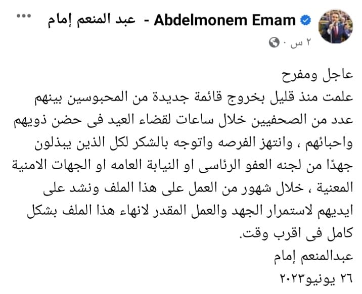 القاهرة في 5 سبتمبر /أ ش أ / رحبت كتلة الحوار بقرار النيابة العامة بالإفراج عن 151 من المحبوسين احتياطيا مؤكدة أن هذا القرار خطوة إيجابية ومهمة في مسار تعزيز المصالحة المجتمعية وتحقيق الاستقرار السياسي والاجتماعي في مصر.
